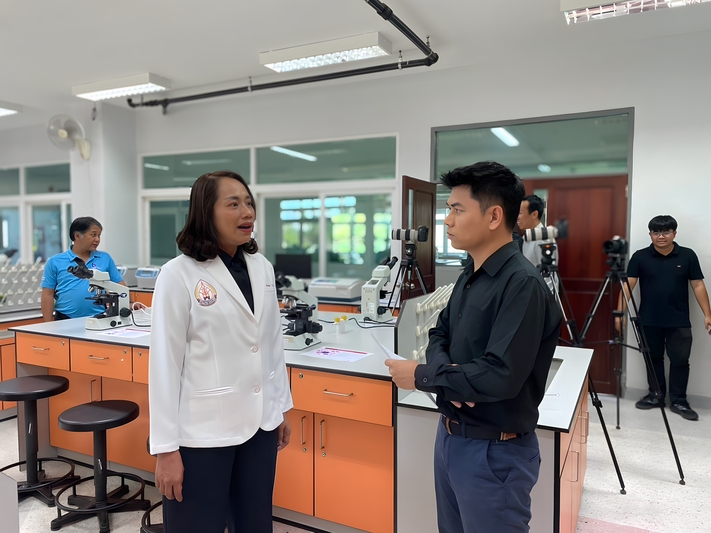 จากนั้น คณะสื่อมวลชนได้เดินทางมายัง คณะวิทยาศาสตร์ มหาวิทยาลัยนครพนม เพื่อสัมภาษณ์ รองศาสตราจารย์ ทนพญ.ดร.วิยดา กวานเหียน กลางบุตร รองคณบดีฝ่ายวิจัย บริการวิชาการ และกิจการนักศึกษา คณะแพทยศาสตร์ และหัวหน้าสาขาวิชาเทคนิคการแพทย์ คณะวิทยาศาสตร์ เกี่ยวกับการพัฒนางานวิจัยและการจัดการเรียนการสอนด้านวิทยาศาสตร์การแพทย์